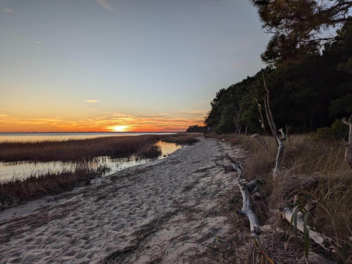 The sun sets early, so if you arrive before 4:30, head on out to Assateague and walk or bike a mile down the Woodland Trail to the Bivalve Trail. Sunsets over Tom’s Cove at the end of this trail are some of the most private and serene you’ll find anywhere.